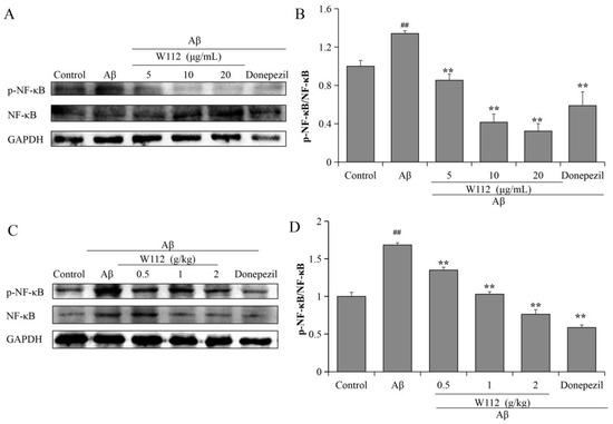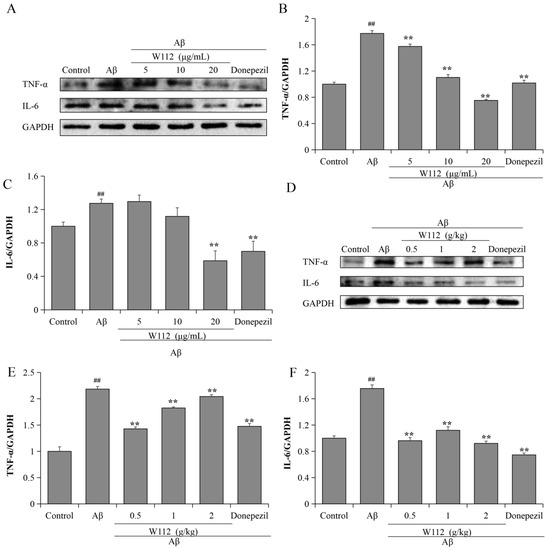 2.4. Effects of W112 on the Aβ25–35-Induced Neuroinflammation