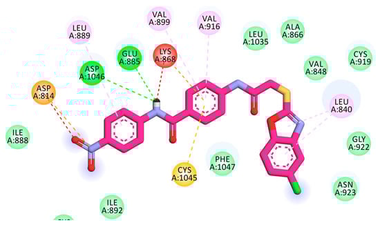 - Taghour, M.S.; Mahdy, H.A.; Gomaa, M.H.; Aglan, A.; Eldeib, M.G.; Elwan, A.; Dahab, M.A.; Elkaeed, E.B.; Alsfouk, A.A.; Khalifa, M.M. Benzoxazole derivatives as new VEGFR-2 inhibitors and apoptosis inducers: Design, synthesis, in silico studies, and antiproliferative evaluation. J. Enzym. Inhib. Med. Chem. 2022, 37, 2063–2077. [Google Scholar] [CrossRef]