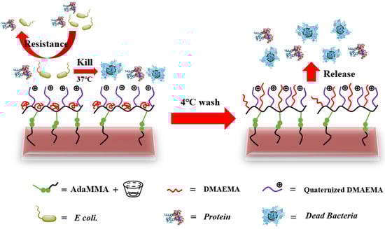 - Cheng, G.; Xue, H. A switchable biocompatible polymer surface with self-sterilizing and nonfouling capabilities. Angew. Chem. Int. Ed. 2008, 47, 8963–8966. [Google Scholar] [CrossRef]