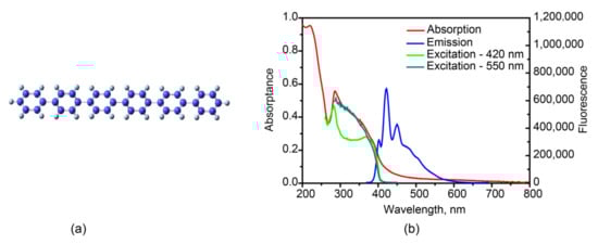 - Faulques, E.; Wéry, J.; Lefrant, S.; Ivanov, V.G.; Jonusauskas, G. Transient Photoluminescence of Para-Hexaphenyl Layers. Phys. Rev. B 2002, 65, 212202. [Google Scholar] [CrossRef]