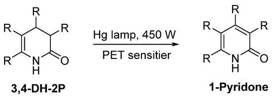 - Sadhu, P.S.; Ravinder, M.; Kumar, P.A.; Rao, V.J. Photochemical Dehydrogenation of 3,4-Dihydro-2-Pyridones. Photochem. Photobiol. Sci. 2009, 8, 513. [Google Scholar] [CrossRef]