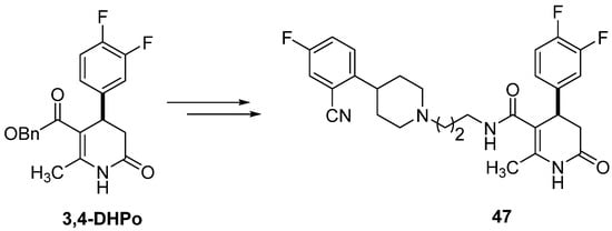 - Nantermet, P.G.; Barrow, J.C.; Selnick, H.G.; Homnick, C.F.; Freidinger, R.M.; Chang, R.S.L.; O’Malley, S.S.; Reiss, D.R.; Broten, T.P.; Ransom, R.W.; et al. Selective α(1a) Adrenergic Receptor Antagonists Based on 4-Aryl-3,4-Dihydropyridine-2-Ones. Bioorganic Med. Chem. Lett. 2000, 10, 1625–1628. [Google Scholar] [CrossRef]