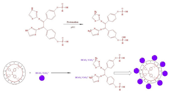 Chromium is classified as a hard acid, and nitrogen is classified as a hard base, that is according to Pearson’s idea of hard and soft acids and basic principles. Cr(VI) occurs as HCrO4− (hydrogen tetraoxochromate anion) in the pH between 2 and 4, while CrO42−- (tetraoxochromate oxyanion) dominates at higher pH dichromate ion Cr2O72− predominates in strongly acidic solutions (pH less than 2) [47].