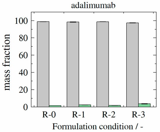 Table 3 lists the different fractions within aqueous HB-IgG-A and HB-IgG-B solutions in the presence of Kleptose®HPB (four different concentrations). The classification of the respective mass fraction is based on the differentiation made previously (see Figure 3).