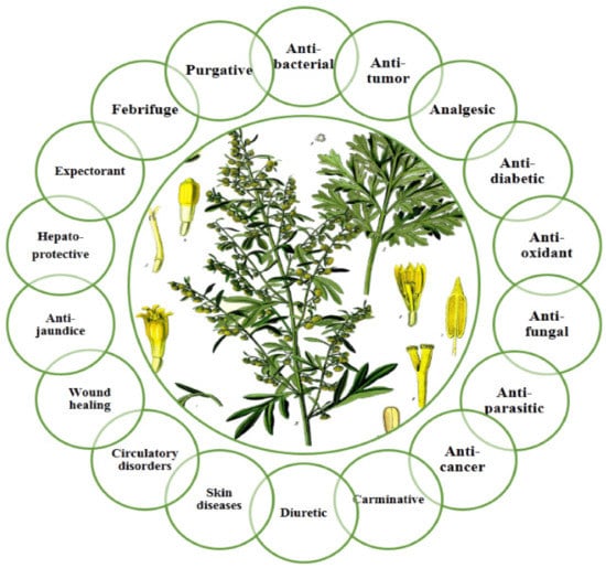 The leaves are harvested during the flowering period, the smell of the raw materials is a little balsamic and the taste is slightly bitter. The unlignified parts of the root are harvested in the fall, when the stem dries up completely, or in the spring, before the plant begins to grow back. Herbal medicine is predominantly applied in Asian countries and in many other countries for the treatment of several (mild and severe) ailments and infectious diseases. A. annua has been shown as an effective therapy against the malaria pathogen Plasmodium falciparum [26,27]. In addition, synthetic drugs commonly used as medicaments can have unpredictable serious side effects and are always associated with a high treatment cost, bringing a serious limitation of therapy. Therefore, the development of new therapeutic strategies is urgently needed, especially ones supported via traditional medicine, which are known as alternative therapeutic methods. Currently, most people around the world are relying on traditional plant medicine to meet their treatment needs, and 60% of the drugs in pharmacies are obtained from medicinal plants [28]. Nowadays, there is a global trend towards the use of medicinal plants and their associated formulations as preventive and therapeutic agents for many diseases because of their availability, safety, potency and valuable traditional knowledge [29,30,31]. Due to the rising demand for phytomedicines on a worldwide scale, the discovery for novel therapeutic plants is essential [32]. Plant-based medications have been employed in several epidemics throughout history. For instance, they were implemented during the two previous outbreaks of coronavirus—MERS-CoV in 2012 and SARS-CoV in 2013. Further, they have been used in the recent seasonal epidemics caused by influenza virus and dengue fever [33,34,35,36]. Moreover, in an emergency situation, such as the presence of COVID-19, and within the absence of therapy, the development of effective or potential synthetic drugs and vaccines is subject to time limits inherent in validation by research protocols and clinical trials.