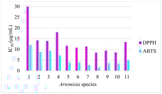 Artemisia genus is one of the largest plant genera belonging to the Asteraceae family, with about 500 species distributed all over the world [52]. Artemisia species are found across temperate North America, the Mediterranean area, Asia, Africa and Australia [9]. With hardly more than 25 taxa in the Southern Hemisphere, they are largely found in the Northern Hemisphere [53].