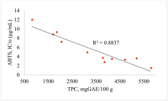 Antioxidants could be used as potential agents for preventing and treating oxidative stress-related disorders [38], including Alzheimer’s disease, diabetes, cancer, arthritis, cardiovascular disease [39] and the ageing process [40]. The most dangerous part of oxidative stress is the formation of reactive oxygen species (ROS) [38,41], which constantly form in the living cell as products of normal oxygen metabolism [42]. ROS spontaneously or in the presence of transition metals converts to more aggressive radicals [43], which can cause damage to many cellular components—for example, lipids, DNA and proteins [44]. Due to the potentially harmful toxicity and carcinogenicity, synthetic antioxidants are not favored for use in the food and drug industries [45]. Therefore, natural ones have become important to use to protect food and enhance human health [46]. Protein Tyrosine Phosphatase 1B (PTP1B, EC 3.1.3.48) and α-glucosidase (EC 3.2.1.20) are the most crucial enzymes for diabetes mellitus, which is a chronic disorder evoked by the high level of blood sugar [47]. PTP1B appears as a key regulator of insulin-receptor activity that acts at the insulin receptor and downstream signaling components, such as the insulin receptor substrate [48]. The α-Glucosidase enzyme is found in the small intestine and catalyzes the breakdown of sugar into glucose [49]. The bacterial neuraminidase BNA (EC 3.2.1.18) is from the group of exo-sialidases, which cleaves the α-ketosidic bond connecting the terminal sialic acid residue with the adjoining oligosaccharide fragment [50]. Sialic acid linkage is very necessary for infections by pathogenic bacteria such as Clostridium perfrigens [51].
