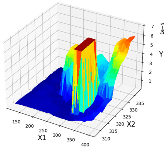 Three-dimensional illustration of pressure (X1), temperature (X2), and solubility (Y).