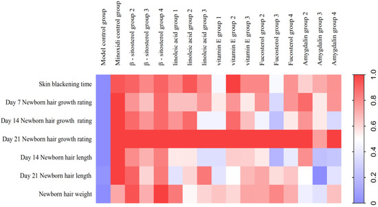 Clinically, the concentration of minoxidil liniment was 20 mg/mL at 0.1 mL each time once a day. The area of hair removal was 4 cm2, and the dosage was 0.5 mg/cm2/d. The dose setting method of the test substance was the same as above. The method was performed in accordance with previous studies [39]. In accordance with previous studies [43], peanut oil was used as a solvent for drugs with low polarity, and physiological saline was used for drugs with high polarity. Pre-experiments were conducted on peanut oil and physiological saline. Peanut oil and physiological saline did not affect the efficacy. Five doses were set for each tested drug (Table 2). The corresponding medicine was accurately weighed, placed in a bottle, and added with solvent. The mixture was shaken with a vortex instrument until complete dissolution or even dispersion was achieved. The prepared medicine was stored in a refrigerator maintained at 4 °C.