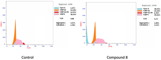 Determination of cell cycle arrest by flow cytometry. Effect of compound 8 on the cell cycle distribution of MCF-7cell line.