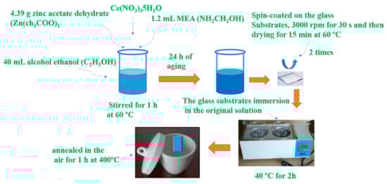 2.1. The Deposition of Un- and Ce-Doped ZnO Film on Glass Substrates