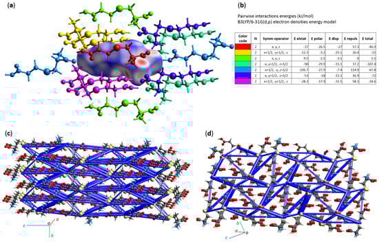 - MacKenzie, C.F.; Spackman, P.R.; Jayatilaka, D.; Spackman, M.A. CrystalExplorer model energies and energy frameworks: Extension to metal coordination compounds, organic salts, solvates and open-shell systems. IUCr J. 2017, 4, 575–587. [Google Scholar] [CrossRef] [PubMed]