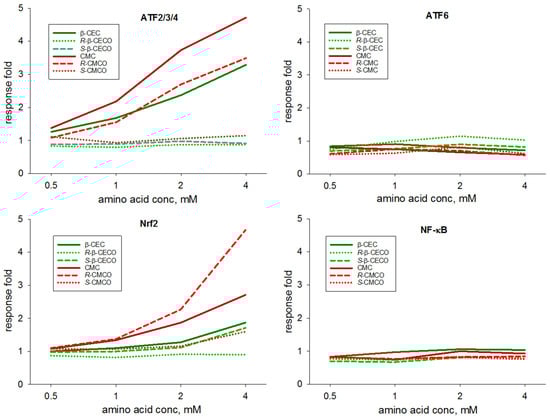 - Palii, S.S.; Kays, C.E.; Deval, C.; Bruhat, A.; Fafournoux, P.; Kilberg, M.S. Specificity of amino acid regulated gene expression: Analysis of genes subjected to either complete or single amino acid deprivation. Amino Acids 2009, 37, 79–88. [Google Scholar] [CrossRef][Green Version]