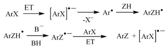 The mechanism of base-promoted homolytic aromatic substitutions. Reprinted with permission from Ref. [69]. Copyright 2013, American Chemical Society.