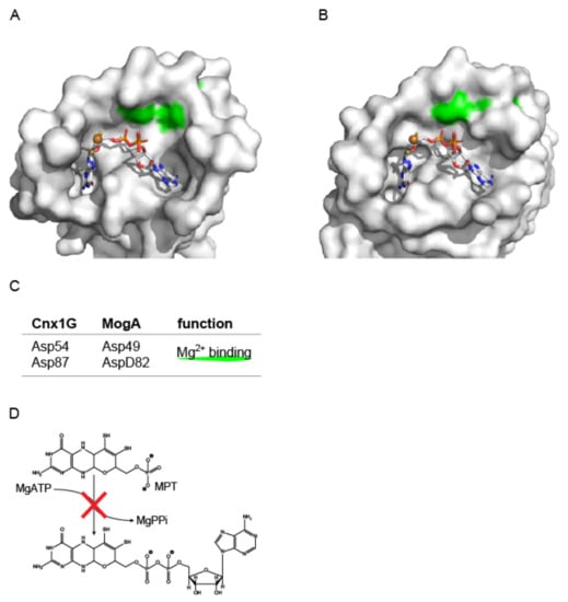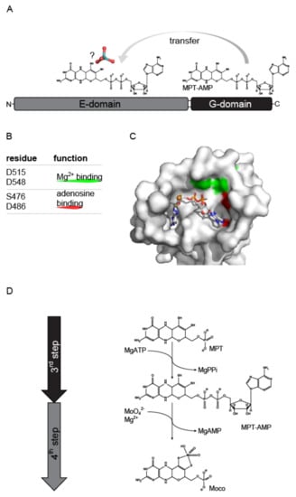 - Nichols, J.D.; Xiang, S.; Schindelin, H.; Rajagopalan, K.V. Mutational analysis of Escherichia coli MoeA: Two functional activities map to the active site cleft. Biochemistry 2007, 46, 78–86. [Google Scholar] [CrossRef][Green Version]