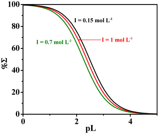 pL0.5 (I = 0.15 mol L−1) > pL0.5 (I = 1 mol L−1) > pL0.5 (I = 0.7 mol L−1)