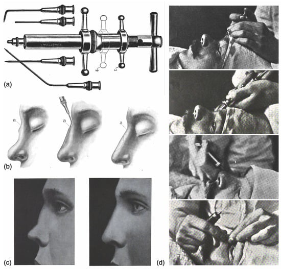 - Ballenger, W.L. Chapter 15: The surgical correction of external nasal deformities. In Diseases of the Nose, Throat and Ear, Medical and Surgical; Ballenger, W.L., Ed.; Lea & Febiger: Palo Alto, CA, USA, 1911; pp. 289–301. Available online: https://www.google.com/books/edition/Diseases_of_the_Nose_Throat_and_Ear_Medi/mTxKAAAAMAAJ?hl=en&gbpv=0 (accessed on 15 June 2022).