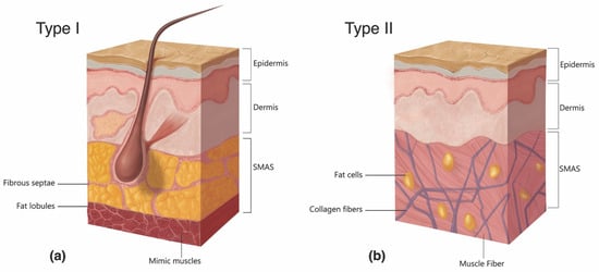 - Schenck, T.L.; Koban, K.C.; Schlattau, A.; Frank, K.; Sykes, J.M.; Targosinski, S.; Erlbacher, K.; Cotofana, S. The functional anatomy of the superficial fat compartments of the face: A detailed imaging study. Plast. Reconstr. Surg. 2018, 141, 1351–1359. [Google Scholar] [CrossRef]