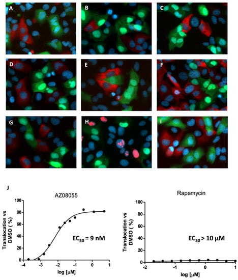 The following supporting information can be downloaded at: https://www.mdpi.com/article/10.3390/molecules27175414/s1, Figure S1: Dose-response assay of RTKs and MEK/ERK inhibitors with U2foxRELOC cells; Figure S2: EC50 concentration of PI3K and mTOR inhibitors; Figure S3: Western Blot analysis of RTKs and MEK/ERK inhibitors. Figure S4: EC50 concentration of PI3K and mTOR inhibitors. Figure S5: Western Blot analysis of RTKs and MEK/ERK inhibitors.