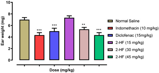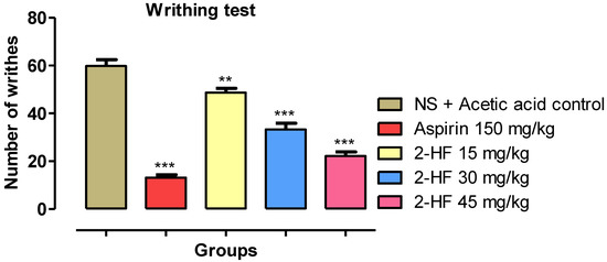 2.3. 2-HF Reduce Acetic Acid-Induced Writhing in Animals