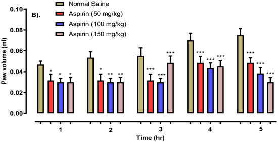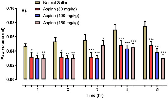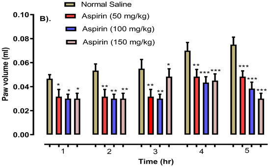 4.4.1. Carrageenan Aroused Paw Edema Model