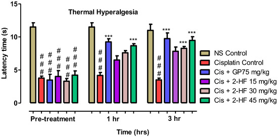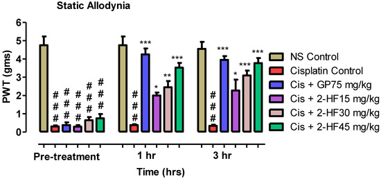 2.6. Effect of 2-HF in Neuropathic Pain Model of Cisplatin