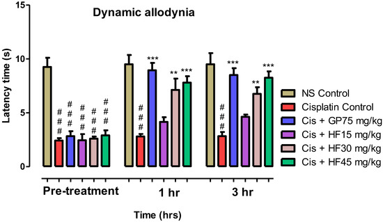 2.6.4. Effect of 2-HF on Dynamic Allodynia