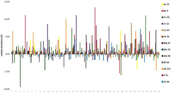 where: D is relative deviation in percent [%]; Cd is PTEs content after dissolving in diluted HNO3 and Cm is PTEs content after mineralization