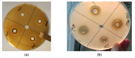 For antibiotics, the disc method is suitable and commonly used. Therefore, microbiological evaluation of antibiotics against the tested strains by the well method was not conducted.