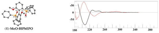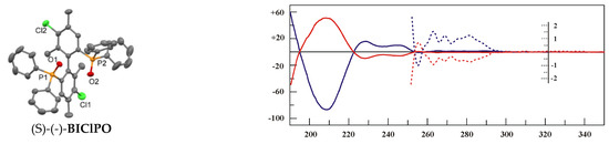 The additional comparison of CD spectra of (S)-(-)-BICLPO and (R)-MeO-BIPhEPO, obtained from commercial (R)-MeO-BIPhEP ligand [23] shows that these compounds adopt the opposite absolute configurations (Figure 4).