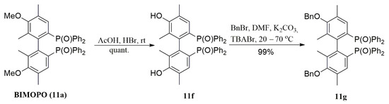 3.3.32. Synthesis of [5,5′-Bis(benzyloxy)-4,4′,6,6′-tetramethylbiphenyl-2,2′-diyl]bis(diphenylphosphane) Dioxide (11g)