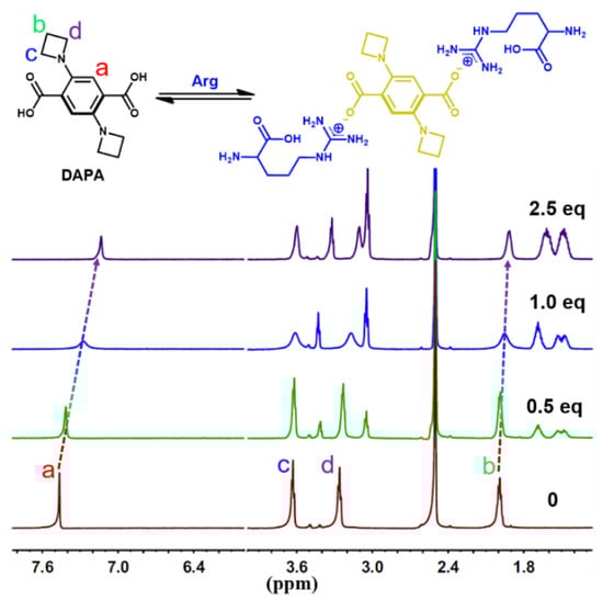Partial 1H NMR spectra of DAPA upon addition of Arg in d6-DMSO/D2O (4/6, v/v).