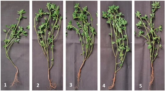 Eight weeks after sowing, the fenugreek growth parameters were measured. Ten plants were gently pulled out, washed, and assessed for the shoot and root lengths (cm), numbers of leaves, and fresh and dry weights (g) of the plant. The fresh weight of the shoot and root was measured after drying the plants for 24 h at room temperature, and the dry weight of plants was recorded after treatment in an oven at 70 °C for 2 days till constant weight.