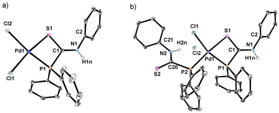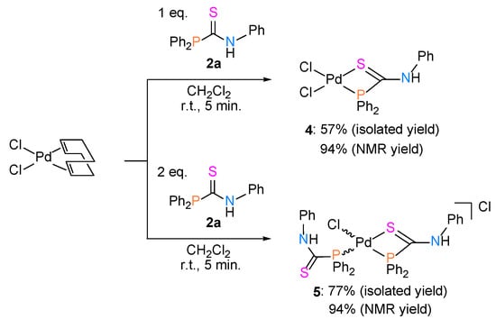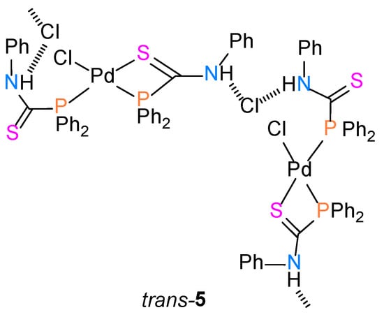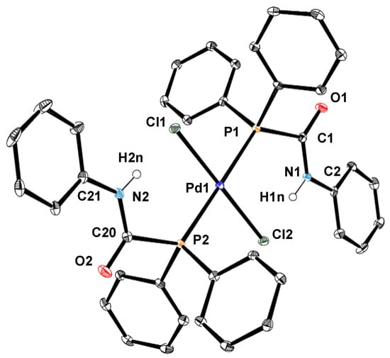 2.2. Synthesis of Palladium(II) Complexes with Phosphinecarboxamide and Phosphinecarbothioamide