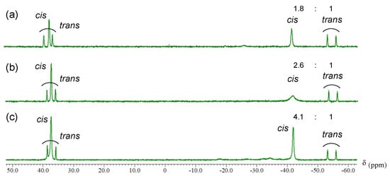 - Redfield, D.A.; Nelson, J.H. Equilibrium energetics of cis-trans isomerization for two square-planar palladium(II)-phosphine complexes. Inorg. Chem. 1973, 12, 15–19. [Google Scholar] [CrossRef]