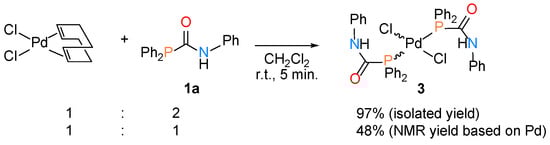 Itazaki M, Okabayashi K, Matsutani T, Nochida T, Moriuchi T, Nakazawa H. Synthesis and Characterization of Phosphinecarboxamide and Phosphinecarbothioamide, and Their Complexation with Palladium(II) Complex. Molecules. 2022; 27(17):5564. https://doi.org/10.3390/molecules27175564
