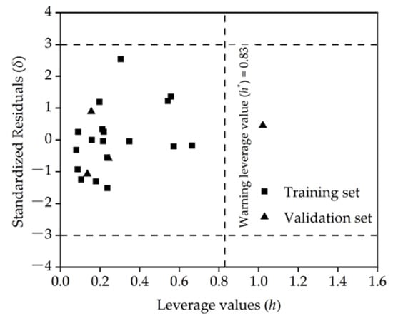 A Williams diagram [57] was used to characterize the application domain of the QSPR model, evaluate its scope of application, and determine whether there were outliers in the modeling samples. The composition of the Williams diagram and its calculation method are described in the Supplementary Materials.