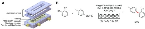 - Wood, A.B.; Nandiwale, K.Y.; Mo, Y.; Jin, B.; Pomberger, A.; Schultz, V.L.; Gallou, F.; Jensen, K.F.; Lipshutz, B.H. Continuous Flow Suzuki-Miyaura Couplings in Water under Micellar Conditions in a CSTR Cascade Catalyzed by Fe/Ppm Pd Nanoparticles. Green Chem. 2020, 22, 3441–3444. [Google Scholar] [CrossRef]
