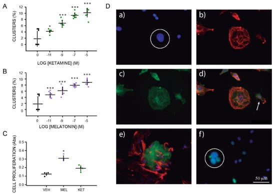 2.3. Ketamine and Melatonin Combination Enhances Cluster Formation