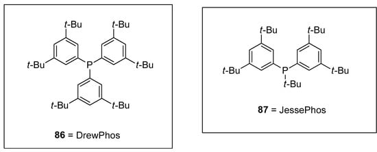 Structures of DrewPhos 86 and JessePhos 87 ligands.