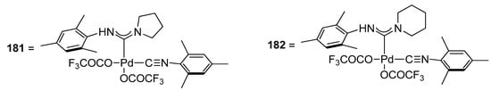 - Rettig, M.F.; Maitlis, P.M.; Cotton, F.A.; Webb, T.R. Tetrakis (tert-Butyl Isocyanide) Di-μ-Chlorodipalladium (I). Inorganic Syntheses: Reagents for Transition Metal Complex and Organometallic Syntheses. Inorg. Synth. 1990, 28, 110–113. [Google Scholar] [CrossRef]