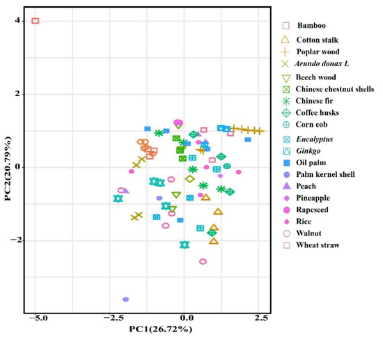 To explore the PA composition difference in the different feedstocks, PCA was not obviously clustered (PC1 variance = 26.72%, PC2 variance = 20.79%) (Figure 1).