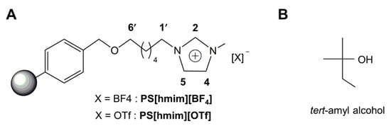 Using PS[hmim][BF4] and PS[hmim][OTf] (A) in tert-amyl alcohol (B) for SN2 fluorination.