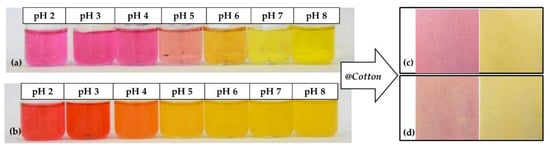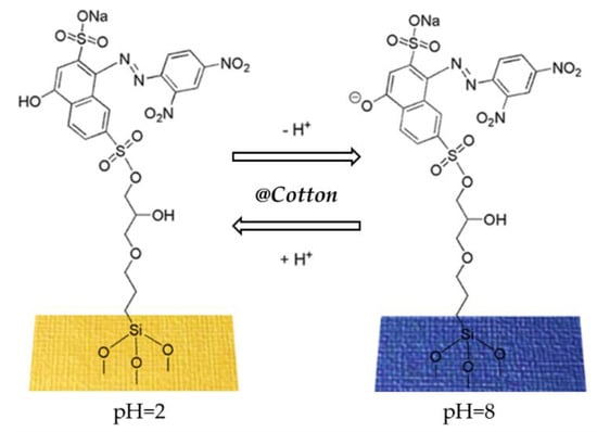 - Van der Schueren, L.; De Clerck, K. Coloration and application of pH-sensitive dyes on textile materials. Color. Technol. 2012, 128, 82–90. [Google Scholar] [CrossRef]