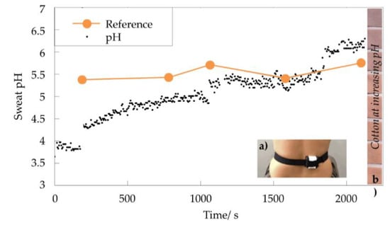 - Caldara, M.; Colleoni, C.; Guido, E.; Rosace, G.; Re, V.; Vitali, A. A wearable sensor platform to monitor sweat pH and skin temperature. In Proceedings of the IEEE International Conference on Body Sensor Networks, Cambridge, MA, USA, 6–9 May 2013; pp. 1–6. [Google Scholar]