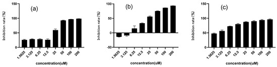 Inhibitory activity of three compounds against α-glucosidase. (a) Chalcomoracin; (b) 1-Deoxynojirimycin (DNJ); (c) acarbose. Data indicated as means ± SD (n = 3).