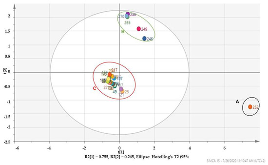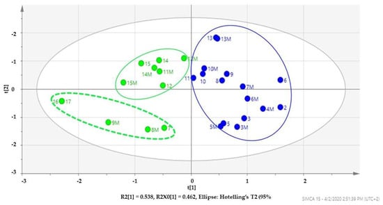 2.2.1. Identification of Marker Compounds in the Non-Polar Hexane and Dichloromethane Extracts of MOS by Chemometrics