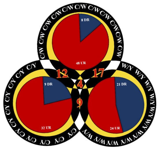 Venn diagram relationship of differentially expressed proteins on basis of regularity within the CW, CY and YW groups.