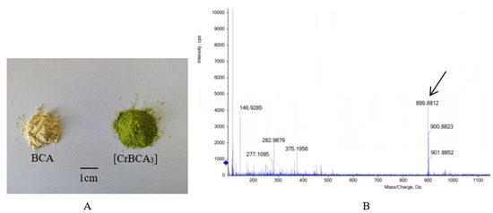Sample condition and HRMS. (A) BCA and [CrBCA3]. (B) Mass spectrum of [CrBCA3].