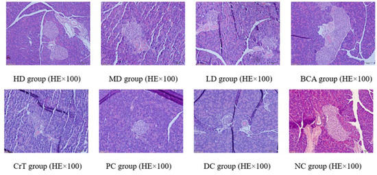 After HE staining, the morphology of the pancreas was observed under a microscope, as shown in Figure 13.